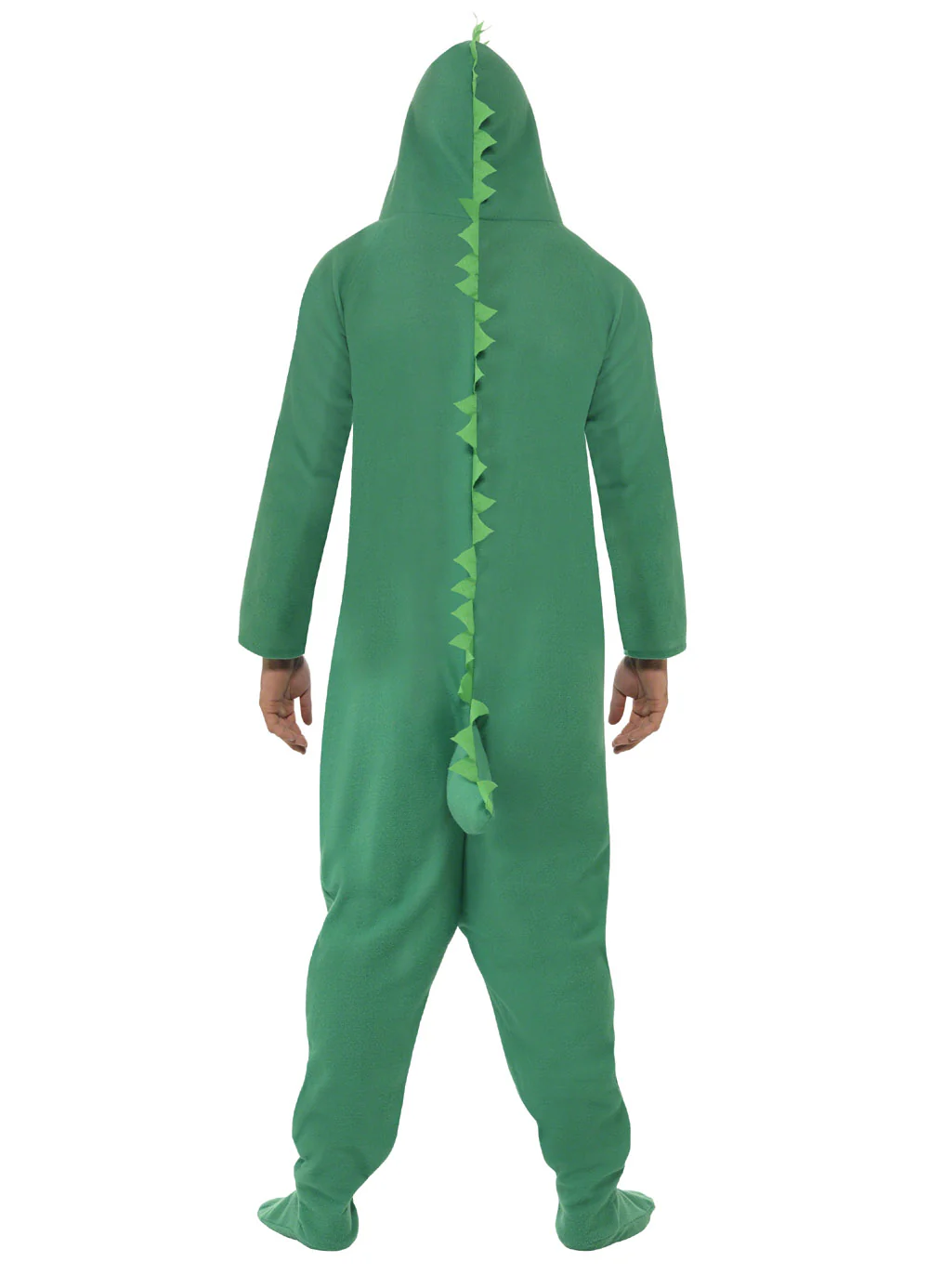 Crocodile onesie animal jumpsuit costume with attached hood and tail. Front zip for easy opening.