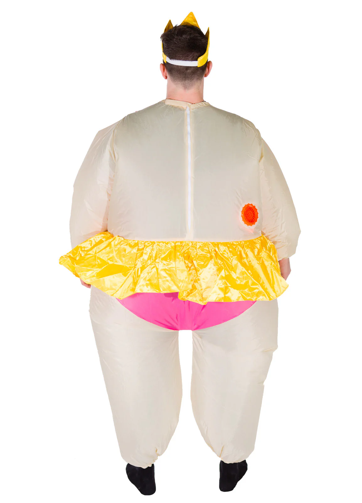 Inflatable Ballerina fancy dress costume consisting of full body zip up jumpsuit with built in fan. Perfect for a party, stag do or festival.