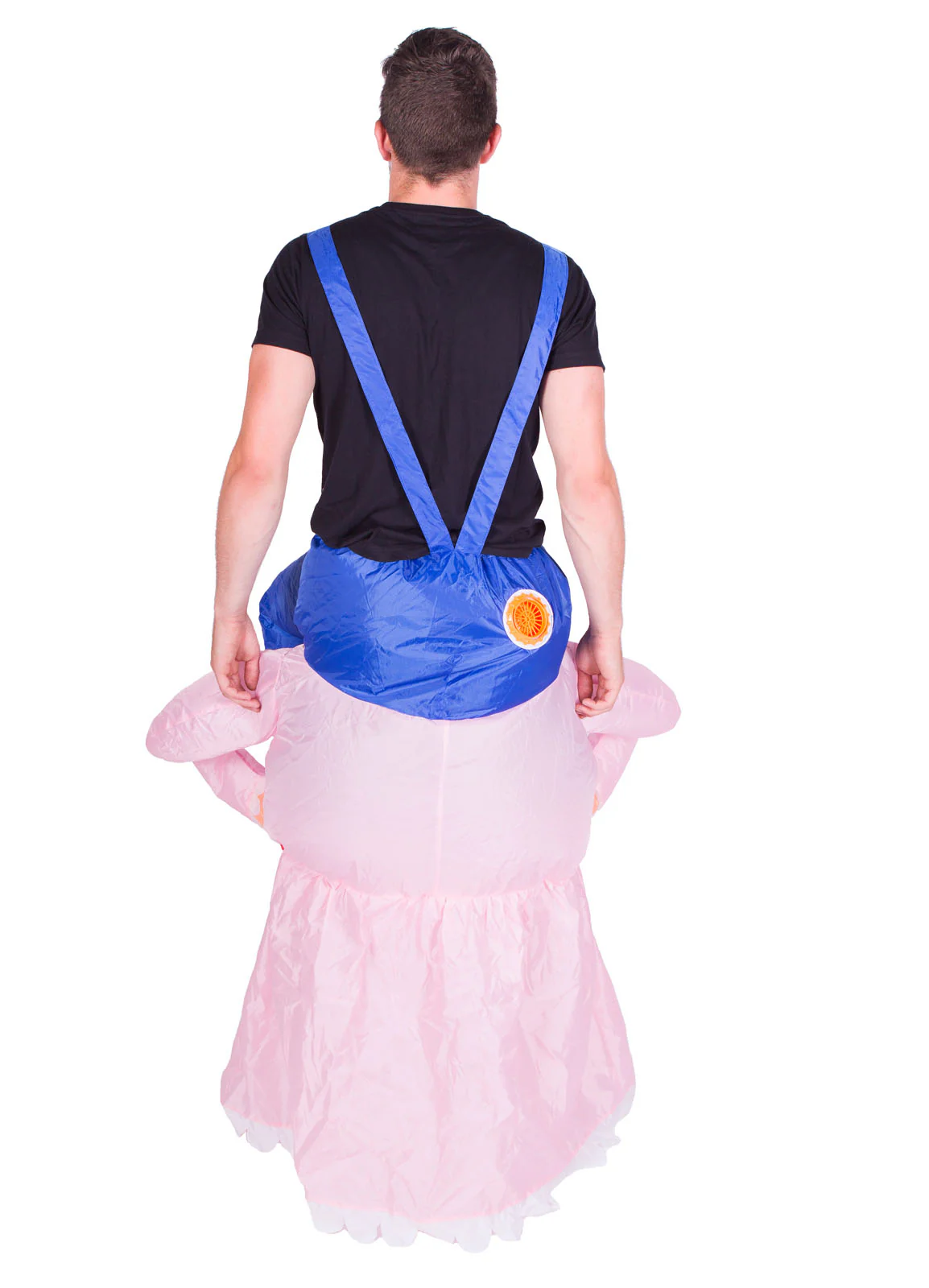 Inflatable Grandma fancy dress costume consisting of half body Grandma jumpsuit to create a piggyback look & built in fan. Perfect for a party, stag do or festival.