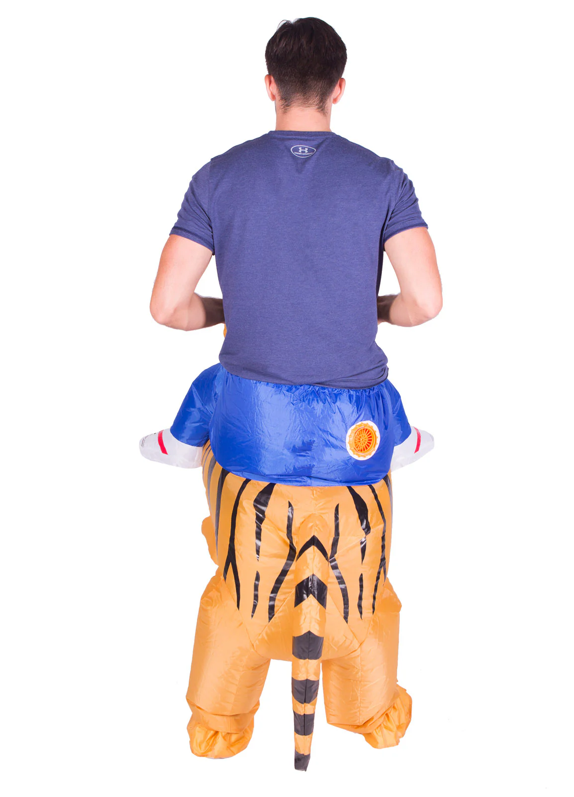 Inflatable Ride On Tiger fancy dress costume consisting of half body jumpsuit with attached tiger & built in fan. Perfect for a party, stag do or festival.